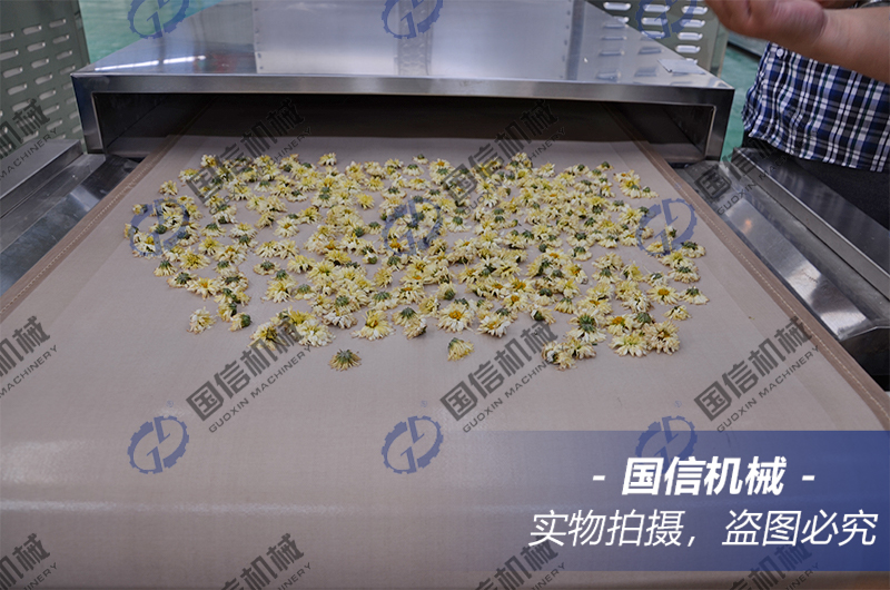 顧名思義,這款設(shè)備采用的就是微波來進(jìn)行烘干和殺青,設(shè)備集殺青、殺菌、烘干于一體,一機(jī)多用,工作原理是以微波的高頻震蕩作用,使菊花從內(nèi)而外的干燥,殺青效果好,營養(yǎng)物質(zhì)保留完整,烘干后的菊花色澤鮮艷,不變色,賣相好。