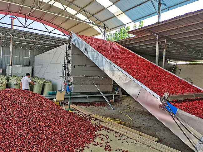 干燥面積、風壓、風量、干燥溫度網帶運轉速度均可調節,以適應蔬菜的特性及品質要求。可根據蔬菜特點,采用不同的工藝流程及添加配套必要的輔助設備。