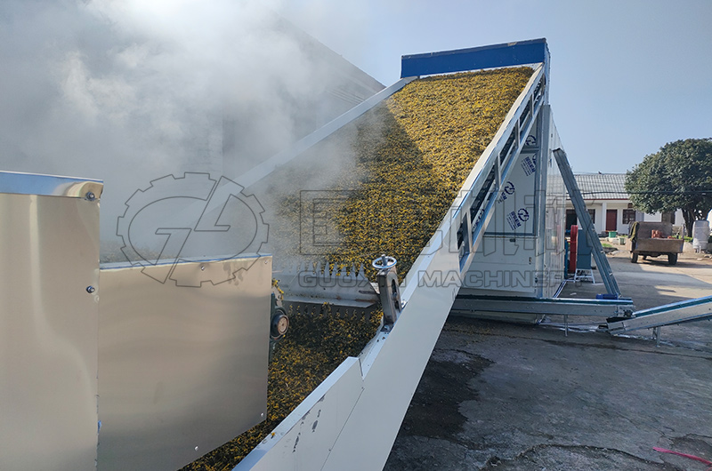 網帶式菊花烘干機是一種大型連續式烘干設備,所以又叫連續式菊花烘干設備,也可叫全自動菊花烘干機。是一種用于菊花等中藥材烘干加工的大型連續式烘干設備。采用多層食品級不銹鋼網帶結構,使菊花在烘干箱體內翻轉輸送,引風機將熱源提供的熱量以熱風的形式輸送至烘干箱體,對菊花進行逐層烘干。